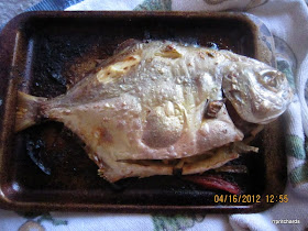 I decided to buy Pompano fish yesterday instead of the Bonita fish. I was bored of the latter. I've been eating the same fish for a month and I wanted something different. I remember when I went to visit a Filipina friend who lives nearby, she made a whole grilled Pompano fish. It was very good. Evie even loved it.